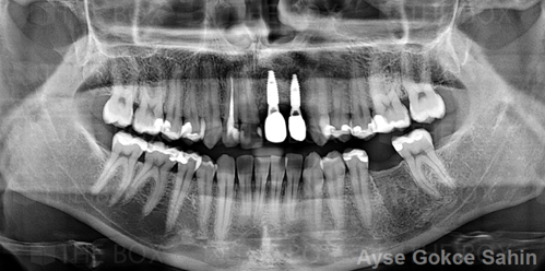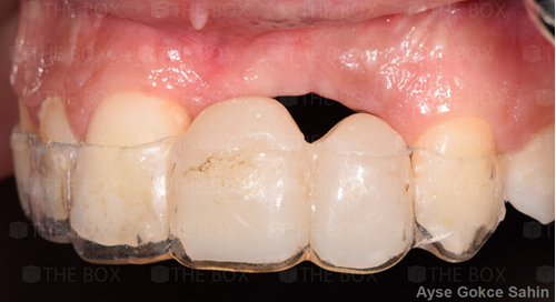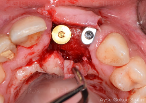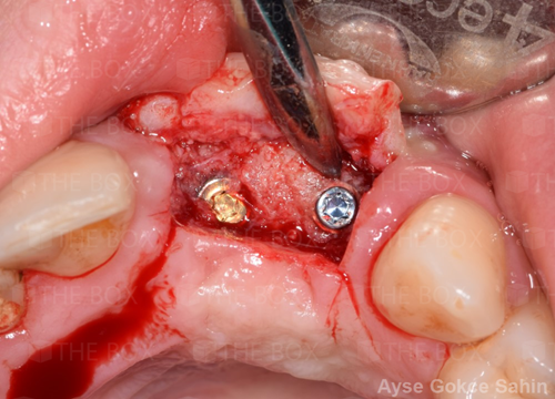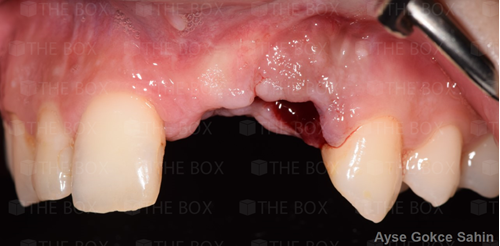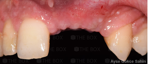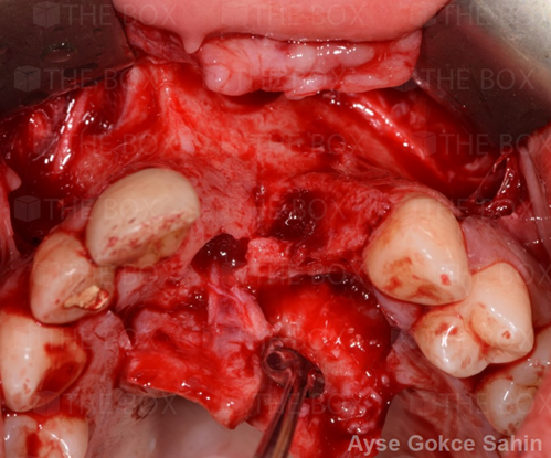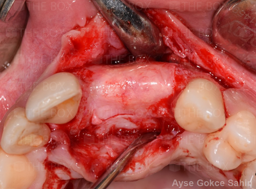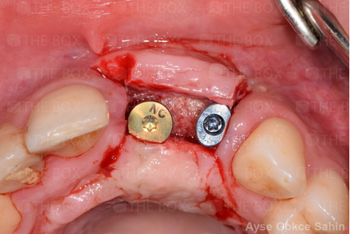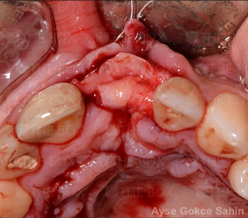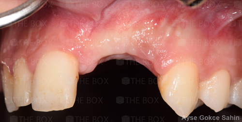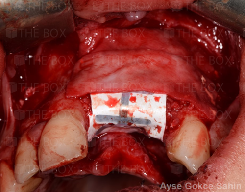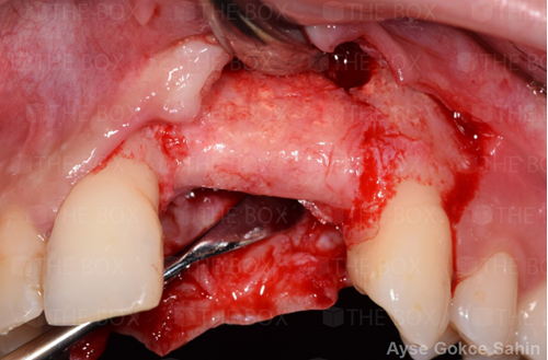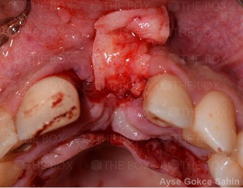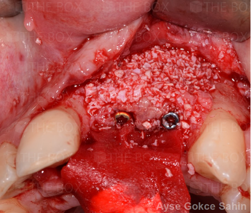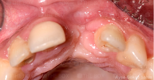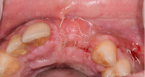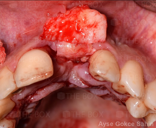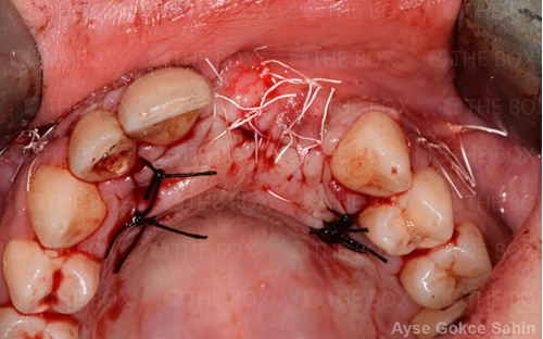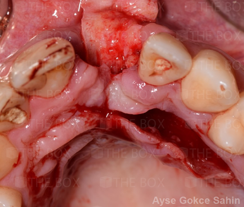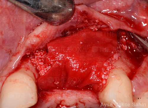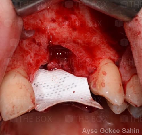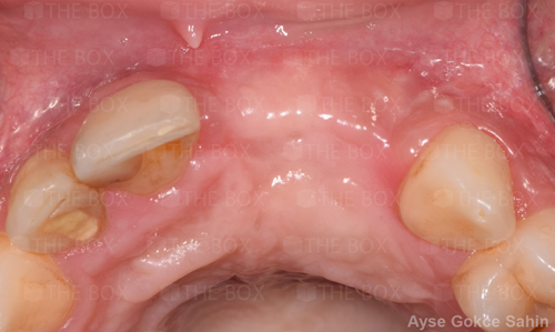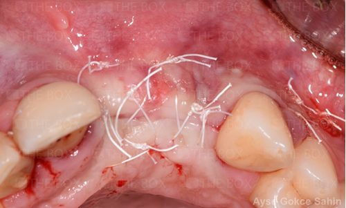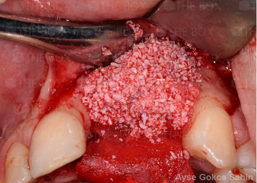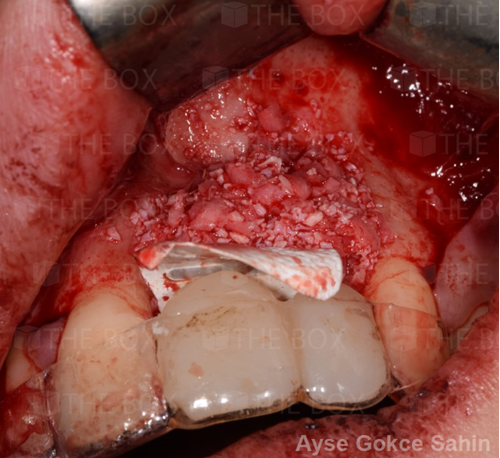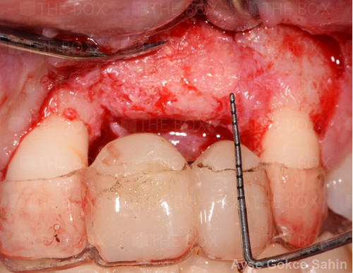 Infra bony defect one wall defect follow up 18 months show regeneration of buccal bone and interdental defect utilizing allograft bone substitute